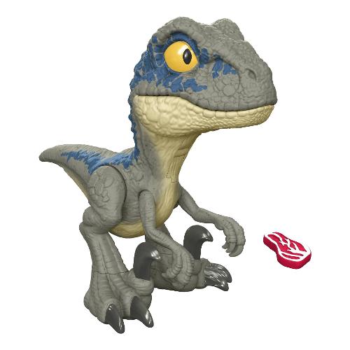 Questa nuova versione elettronica del velociraptor più famoso di jurassic world, blue, entusiasmerà i giovani appassionati di dinosauri con la sua azione ruggente, il divertimento e i suoni coinvolgenti. Quanto più si sposta indietro la gamba destra, tanto più si apre la bocca e tanto più forti diventano i rumori ruggenti! Con l'accessorio bistecca, i bambini possono dare da mangiare al drago, attivando suoni di masticazione e persino forti rutti.