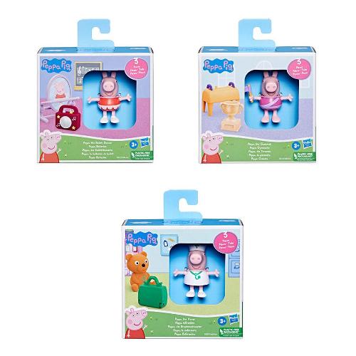 Immagina avventure quotidiane con la linea peppa plays! Ogni personaggio snodabile indossa un abito a tema speciale e include 2 accessori, così i bambini possono ricreare le scene della serie o giocare a fare finta con peppa! Il personaggio in scala da 7,5 cm è snodabile. Questi set sono un fantastico regalo di compleanno o di natale a tema peppa pig per qualsiasi bambino in età prescolare.