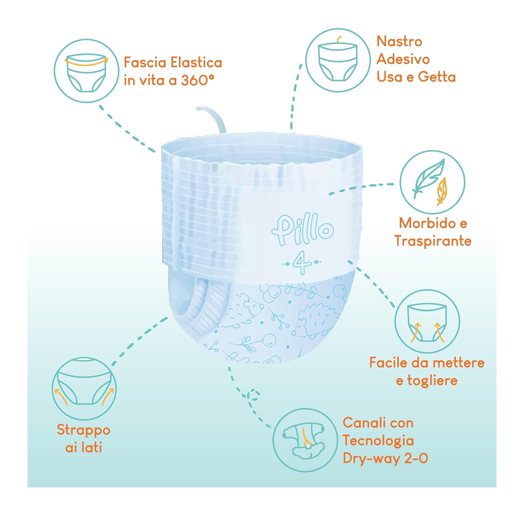 I pants pillo sono studiati per la fase di spannolinamento del bambino. Grazie al tessuto morbido e traspirante avvolgono il corpo del bambino in modo soffice e delicato. I pants pillo sono facili da indossare grazie alla vestibilità a mutandina. Inoltre, la fascia elastica in vita a 360° consente perfetta adattabilità al corpo del bambino. La certificazione oeko-tex standard 100 dei pannolini pillo assicura la qualità dei materiali impiegati nel processo produttivo totalmente made in italy. L’impatto ambientale di pillo è sempre più ridotto! La certificazione i’m green pe testimonia l’impegno di pillo nell’impiego di bioplastiche completamente compostabili nella produzione di pannolini. Inoltre, la certificazione fsc testimonia l’utilizzo di cellulosa proveniente da foreste gestite in modo sostenibile.