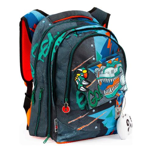 Zainetto scuola estensibile (35Lt) Round GOPOP T-REX (31x17,5x43cm) Nero, Verde e Arancio GG9U0610