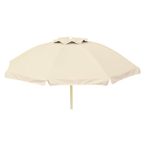 Ombrellone Poli ecrù cm 200. Misura: 200/8 cm. Fusto: Ø 33 mm con bacchette in fiberglass e con bloccaggio. Camino antivento. Colore: ecrù. Interno argento con alta protezione UV. Materiale: Poliestere. Fornito con sacca in tessuto con tracolla