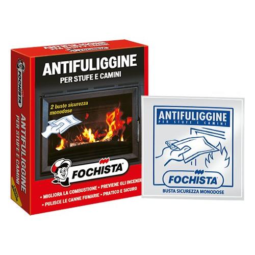 Antifuliggine - 2 buste monodose 150 gr. Massima sicurezza, basta gettare la busta direttamente nel fuoco per la regolare manutenzione delle canne fumarie.