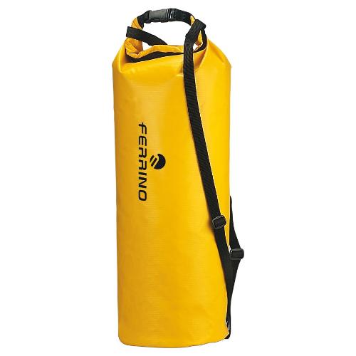 Sacca in nylon spalmato termosaldato con chiusura arrotolabile e fibbia per ottenere un contenitore stagno e impermeabile. Spallacci per il trasporto inclusi