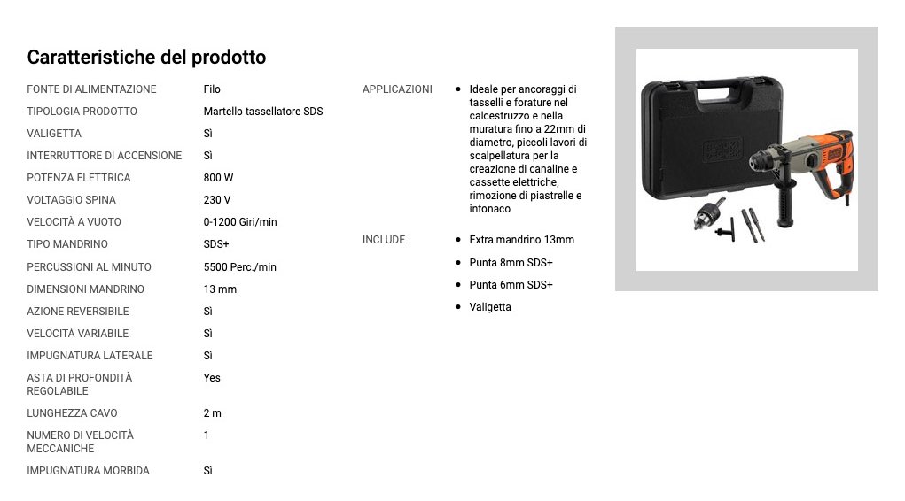 Black & Decker Trapano tassellatore perforatore, demolitore SDS Plus (800W) BEHS02KQS