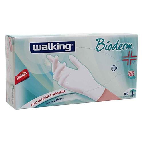 Walking modello professionale bioderm senza polvere interna. E' indicato per gli impieghi domestici e medico - sanitari assicurando protezione da rischi microbiologici e chimici e garantendo comfort alla mano dell'operatore. Con finitura liscia sono formulati per garantire morbidezza e vestibilità. Ottimi per chi soffre di allergie e sensibilizzazioni della pelle.