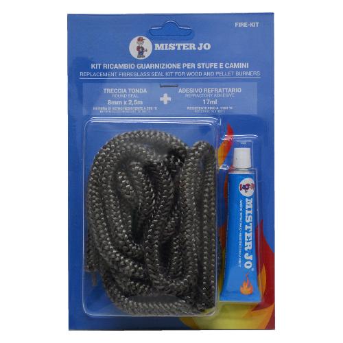 Kit composto di treccia e adesivo alta temperature. Le trecce in fibre di vetro nelle stufe a legna od a pellet sono molto importante sia per il funzionamento corretto che per la sicurezza. Una guarnizione rovinata può causare incidenti pericolosi e l’uscita dei fumi. Una guarnizione usata diminuisce l’efficienza delle stufe e le stufe bruceranno più legna o pellet. E’ consigliato di sostituire la guarnizione delle stufe ogni anno per una manutenzione corretta.