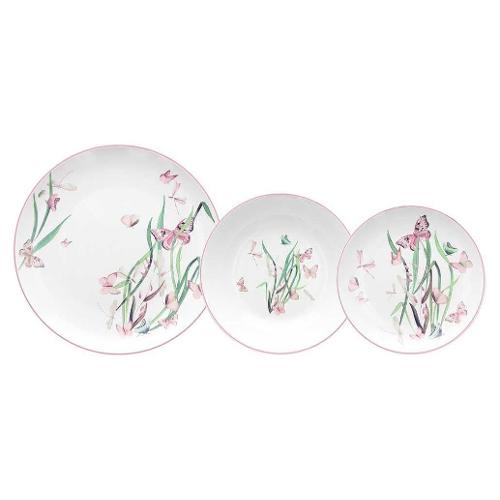 Servizio piatti Porcellana 18 pz Butterfly MOON Bianco e Rosa MN070185820