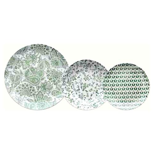 Servizio piatti Porcellana 18 pz Floris 2813 MOON Verde e Bianco MN070182813