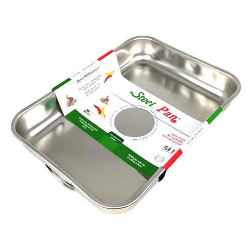 Fantastica teglia da forno in acciaio inox 18/10 aisi 304, con una zigrinatura brevettata all’interno che la rende antiaderente, al contrario di qualsiasi altra teglia in acciaio. Perfetta per cucinare qualsiasi pietanza, non assorbe mai gli odori e può essere lavata in lavastoviglie. In una sola parola: ETERNA.