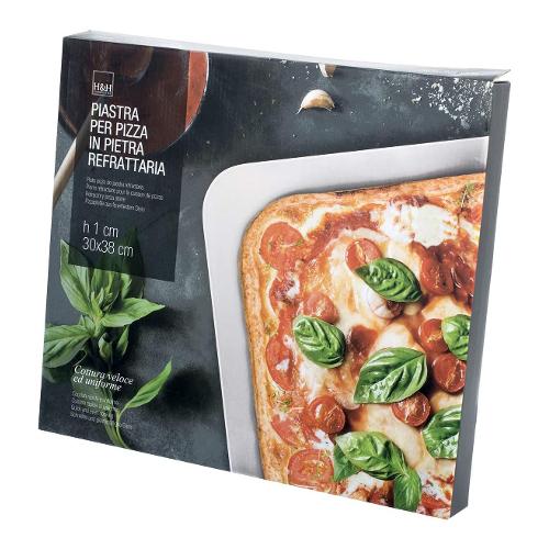 Piastra in cordierite, un materiale refrattario ideale per la cottura, lo scongelamento o riscaldamento di pizza, pane e panificati. Utilizzabile su forno, caminetto, barbecue e microonde. Resistente fino ad un massimo di 787 gradi centigradi
