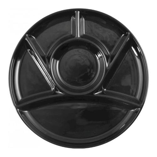 Piatto con scomparti per salse e alimenti diversi. I piccoli bordi che separano le aree del piatto mantengono adeguatamente separati condimenti e sapori. Utile anche come pratica antipastiera