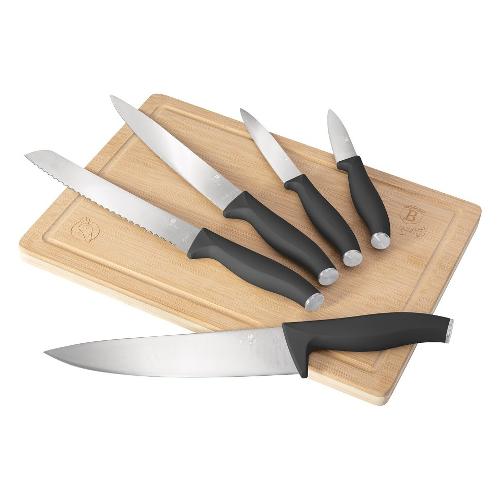 Set coltelli cucina Inox 5 pz con tagliere ANTHRACITE Grigio scuro BH 2961