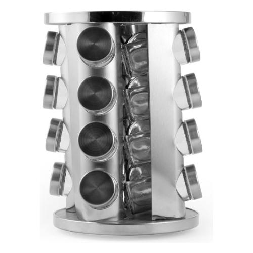 Organizza le tue spezie con stile e praticità grazie a questo elegante porta spezie con 16 barattoli in vetro. Il supporto girevole in acciaio inox unisce design moderno e funzionalità, permettendoti di accedere facilmente a tutte le tue spezie. Perfetto per avere sempre a portata di mano gli aromi più utilizzati. I barattoli, senza tappo, sono idonei al lavaggio in lavastoviglie, per una pulizia semplice e veloce.