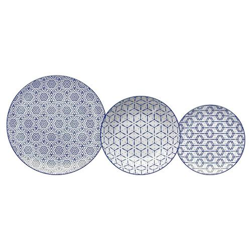 Servizio piatti Porcellana 18 pz DOWNTOWN Blu e Bianco ME070185669