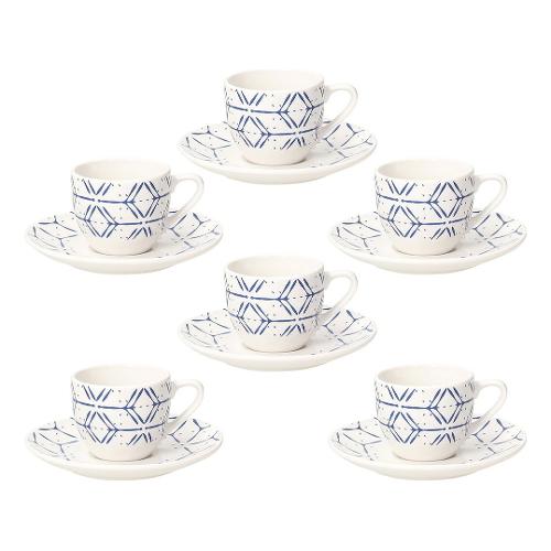 Set tazzine caffè porcellana con piatto 6 pz (90ml) DOWNTOWN Bianco e Blu ME085015669