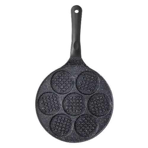 La piastra per waffel/gaufres premium black è l’ideale per preparare il classico dolce del nord europa, tipico del belgio (dove viene chiamato anche gaufre), della francia, della germania e dei paesi scandinavi. Versa l’impasto nei 7 stampini e scegli ogni giorno una ricetta diversa: waffle salati, con la frutta, con la crema pasticcera o semplici, solo con un po’ di zucchero a velo. Il corpo è in fusione d’alluminio; il fondo ad alto spessore è adatto a tutti i piani di cottura, compresa l’induzione; il rivestimento interno antiaderente marmorizzato rinforzato con minerali duri garantisce resistenza ai graffi e lunga durata; il manico in bakelite color nero è ergonomico ed antiscottatura. Lavabile in lavastoviglie, la padella antiaderente per waffel/gaufres premium black è ideale da abbinare agli altri 5 modelli della gamma, per un set coordinato, versatile ed accattivante, immancabile per esprimere tutta la tua creatività in cucina con molteplici ricette. Questa piastra è pfoa free e nickel free.
