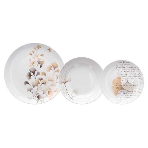 Servizio piatti Porcellana 18 pz POESIA Beige decorato MC070185787