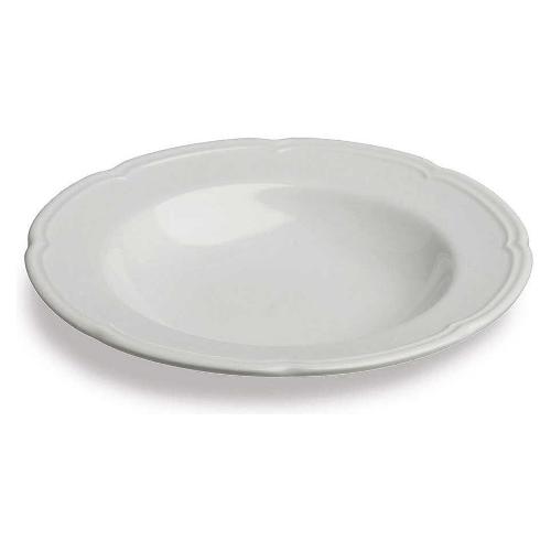 Il piatto fondo in porcellana di colore bianco con una cornice in rilievo della linea ouverture misura 23 cm di diametro.