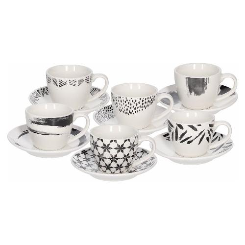 Set tazzine caffè bone china con piatto 6 pz (80ml) ZENITH Bianco e Nero IR685015974