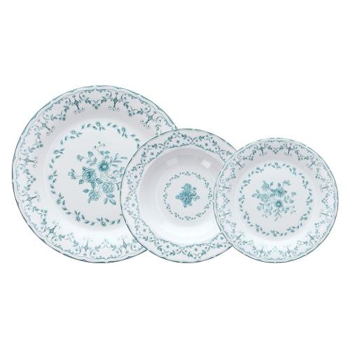 Servizio piatti Porcellana 18 pz ELOISE Bianco e Verde ottanio ON070186028