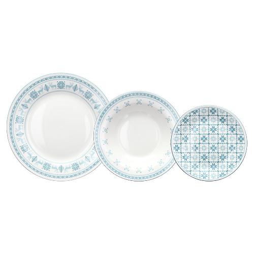 Servizio piatti Porcellana 18 pz POLAR Bianco e Azzurro ON070185968