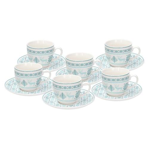 Set tazze te bone china con piatto 6 pz (200ml) POLAR Bianco e Azzurro IR685025968