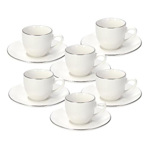 Set tazzine caffè porcellana con piatto 6 pz (90ml) FASCIA PLATINO Bianco MC085011801