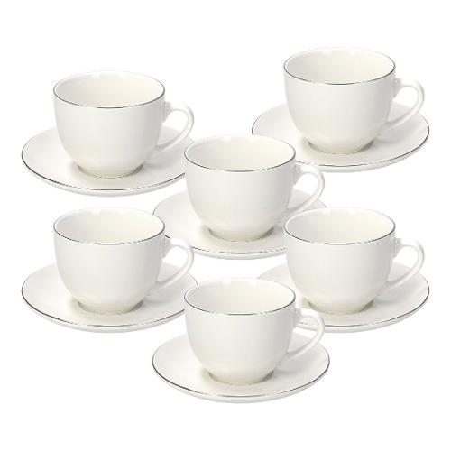 Set tazze te porcellana con piatto 6 pz (260ml) FASCIA PLATINO Bianco MC085021801