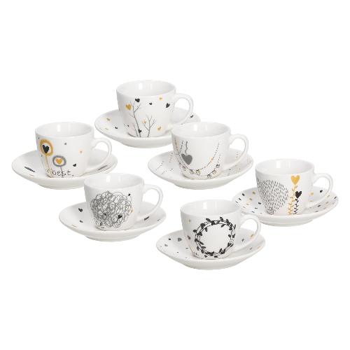 Set tazzine caffè bone china con piatto 6 pz (80ml) GOLDY Bianco decorato IR685345563