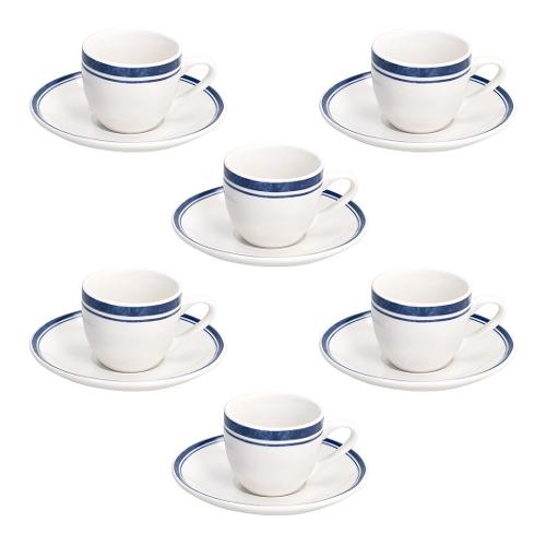 Set tazzine caffè porcellana con piatto 6 pz (80ml) FILO BLU Blu e Bianco MC085016255