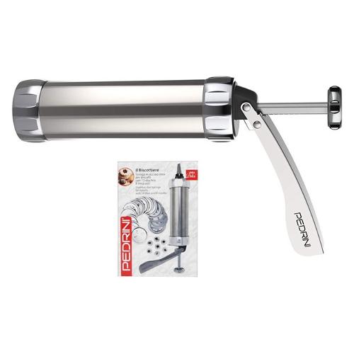 Il biscottiere pedrini, detto anche siringa spara biscotti, è in acciaio inossidabile, facilmente smontabile.