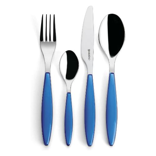 Il perfetto connubio fra acciaio e materiale plastico viene rappresentato in questo set di posate. L'acciaio inox, di altissima qualità, percorre tutta la lunghezza della posata sul cui manico vengono applicati i preziosi elementi in plastica bicolore. E' progettata per resistere a migliaia di lavaggi in lavastoviglie garantendo la massima igiene dei materiali.