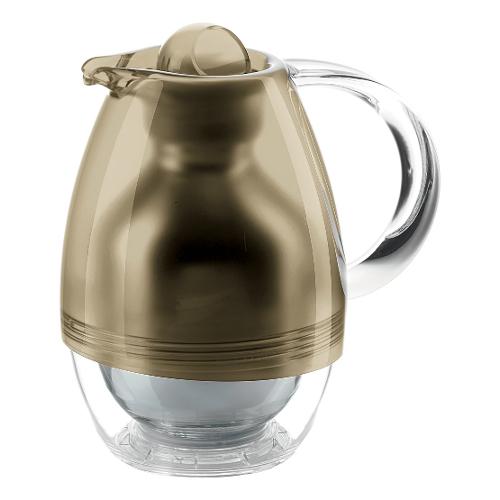 Un oggetto di design che coniuga al meglio il binomio di forma e funzione. Il corpo cromato, dalle forme morbidi e non banali, il manico ergonomico e la leva di apertura, che consente l'utilizzo del prodotto con una sola mano, rendono il prodotto unico e distintivo. Il vetro termico garantisce una lunga durata del mantenimento termico del liquido all'interno