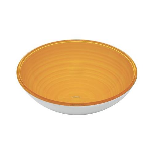 Contenitore bianco all'esterno e colorato internamente, con un segno grafico che gioca sui cerchi concentrici che danno movimento e un piacevole effetto ottico. Creato abbinando materiale 100% riciclato a materiale acrilico pregiato.