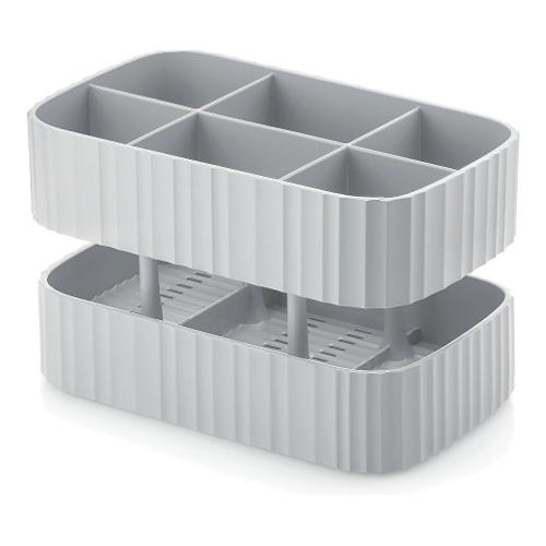 Pratico e compatto scolaposate a sei scomparti e due differenti altezze per aiutarti a separare le diverse posate. Il piattino integrato raccoglie l'acqua in eccesso. Facile da pulire, lavabile in lavastoviglie e completamente smontabile in tre pezzi. Realizzato in materiale plastico antibatterico, in grado di ridurre la proliferazione batterica, dal riciclo di 2,3 flaconi in plastica usa e getta 100% post consumo.
