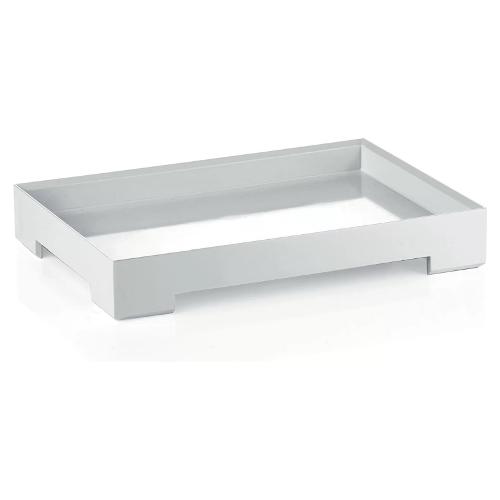 "essence", il vassoio dal design minimale, perfettamente impilabile per avere anche una funzione salvaspazio. Il fondo è antigraffio, i bordi rialzati facilitano la presa e i quattro piedini danno stabilità per un servizio in massima sicurezza.