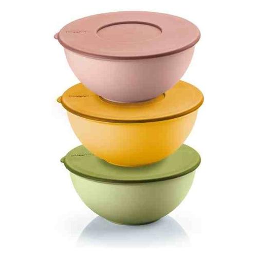 Tre pratici e versatili contenitori con coperchio per preparare, Conservare e servire ovunque e ogni giorno.