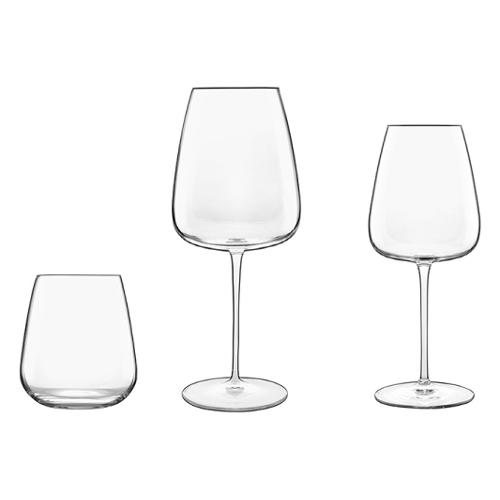 Set tavola composto da 6 calici per vino rosso 70 cl , 6 calici per vino bianco 55 cl e 6 per acqua 45 cl