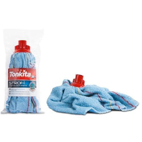 Mop lavapavimenti in speciale spugna di cotone è indicato per tutti i tipi di pavimento, da qulli più grezzi come il cotto a quelli più delicati come il marmo. Il mop è realizzato con tecnologia STROFÌ: lavorazione con ricci annodati singolarmente su una robusta trama in poliestere, per una straordinaria resistenza all’uso prolungato e ai lavaggi. L’elevata percentuale di fibre in cotone garantisce un’eccezionale assorbenza. L’esclusiva struttura a campana permette di utilizzare al massimo la superficie pulente a disposizione.