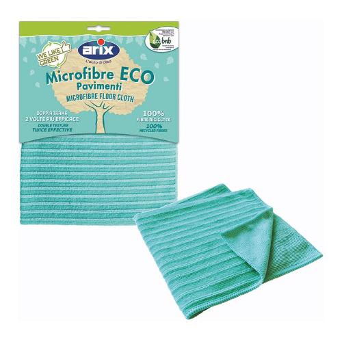 Panno pavimenti in microfibra 100% riciclata. Grazie alla doppia trama del tessuto il panno svolge una duplice azione pulente: il lato in morbide microfibre ultra sottili cattura lo sporco più minuto, lava e asciuga anche le superfici più delicate. Il lato con inserti di fibre di nylon rimuove a fondo le macchie e lo sporco incrostato senza graffiare le superfici in ceramica e gres. Efficace anche solo con acqua. Non lascia pelucchi né aloni.