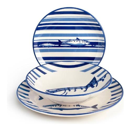 Servizio piatti Stoneware 18 pz PUERTO Bianco e Blu 1493100