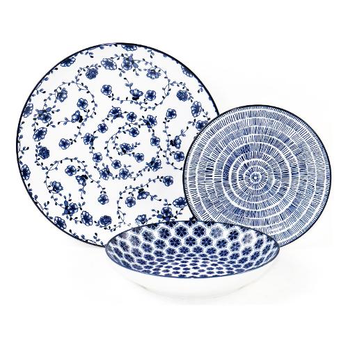 Servizio piatti Porcellana 18 pz FLORAL MIX Blu 23074