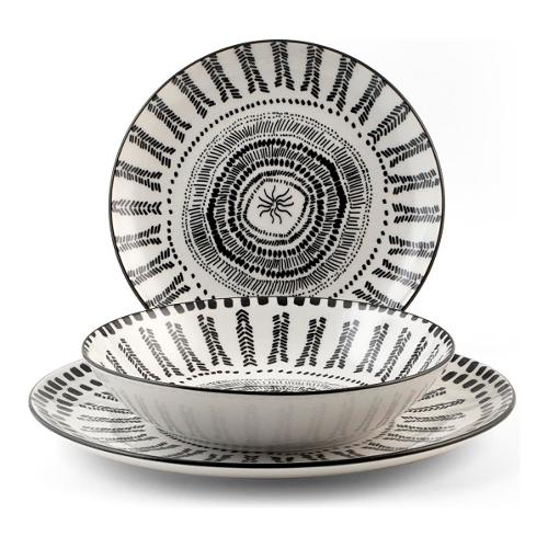 Servizio piatti Porcellana 18 pz VOYAGE Bianco e Nero 9242630
