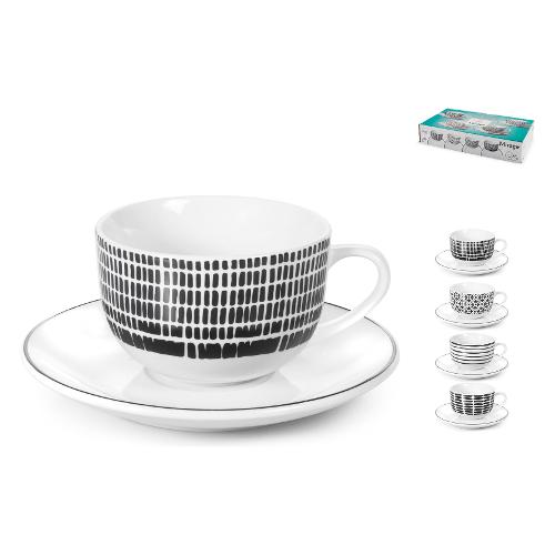 Set tazze te porcellana con piatto 4 pz (210ml) MIRAGE Bianco e Nero 8034393