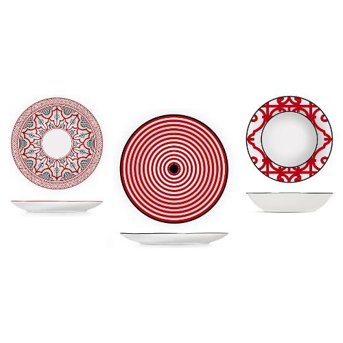 Servizio piatti Porcellana 18 pz Nomad BRUNO BARBIERI Bianco e Rosso 8013090
