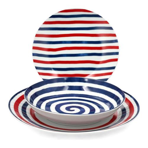 Servizio piatti Porcellana 18 pz GRAPHIC Rigato blu e rosso 9647390