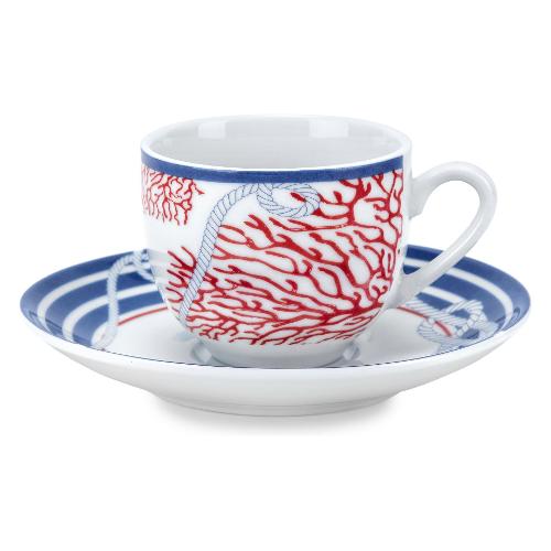Set tazzine caffè porcellana con piatto 6 pz (100ml) NAVY Blu e Rosso 57405