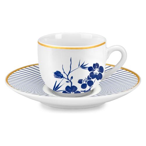 Set tazzine caffè porcellana con piatto 6 pz (100ml) BALI Bianco, Blu e Oro 58746