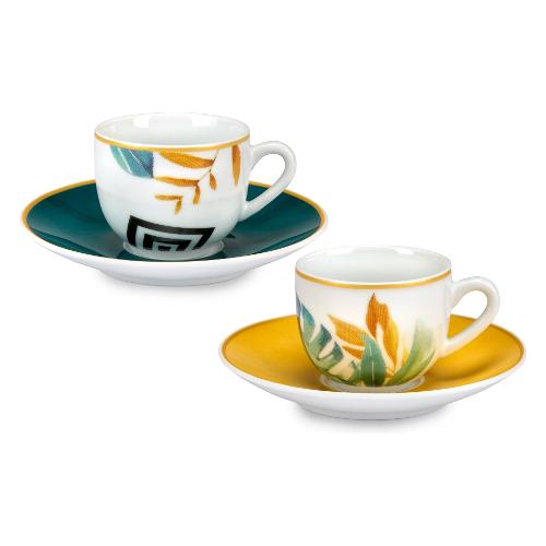 Fade Set tazzine caffè porcellana con piatto 6 pz (100ml) PALM Multicolor 58742