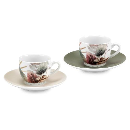 Fade Set tazzine caffè porcellana con piatto 6 pz (100ml) da caffè MALIKA Verde e Marrone 58841